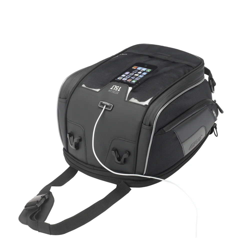 Tanklock expandable tank bag with removable tabletholder,